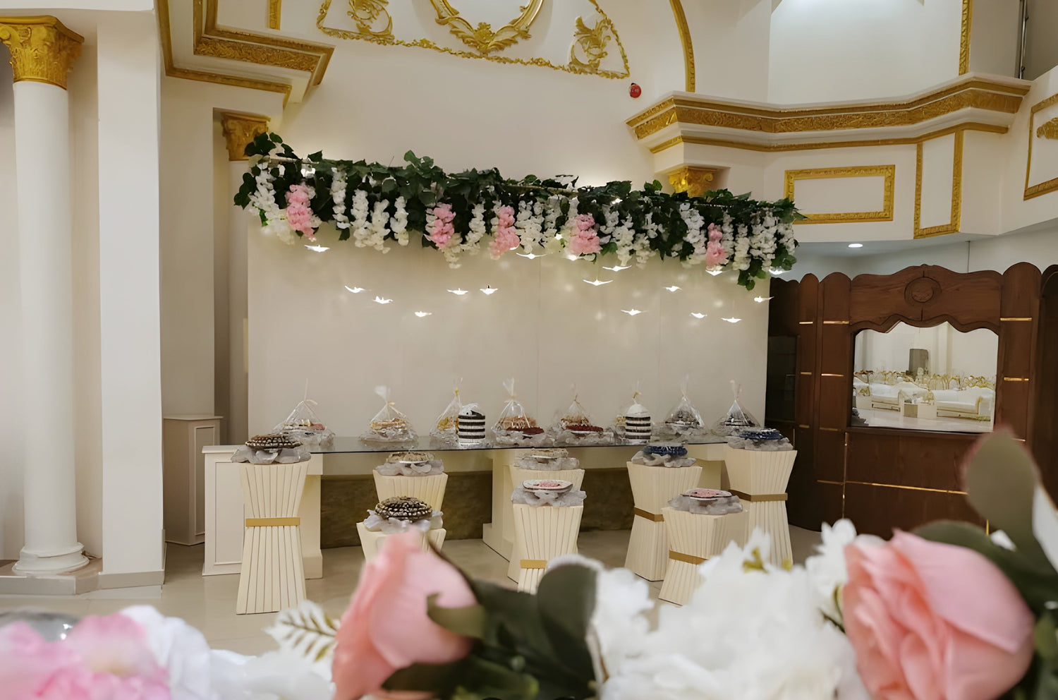 مع ديكور أنيق وأجواء راقية تتحول المساحة إلى لوحة فاخرة تُزيَّن بتفاصيل الضيافة المميزة طاولات أنيقة تعكس حسن التنظيم، وحلويات وشوكولاتة مغلفة بعناية لتبهر ضيوفكم وتمنح مناسبتكم لمسة من الفخامة والاهتمام تجعلها ذكرى لا تُنسى