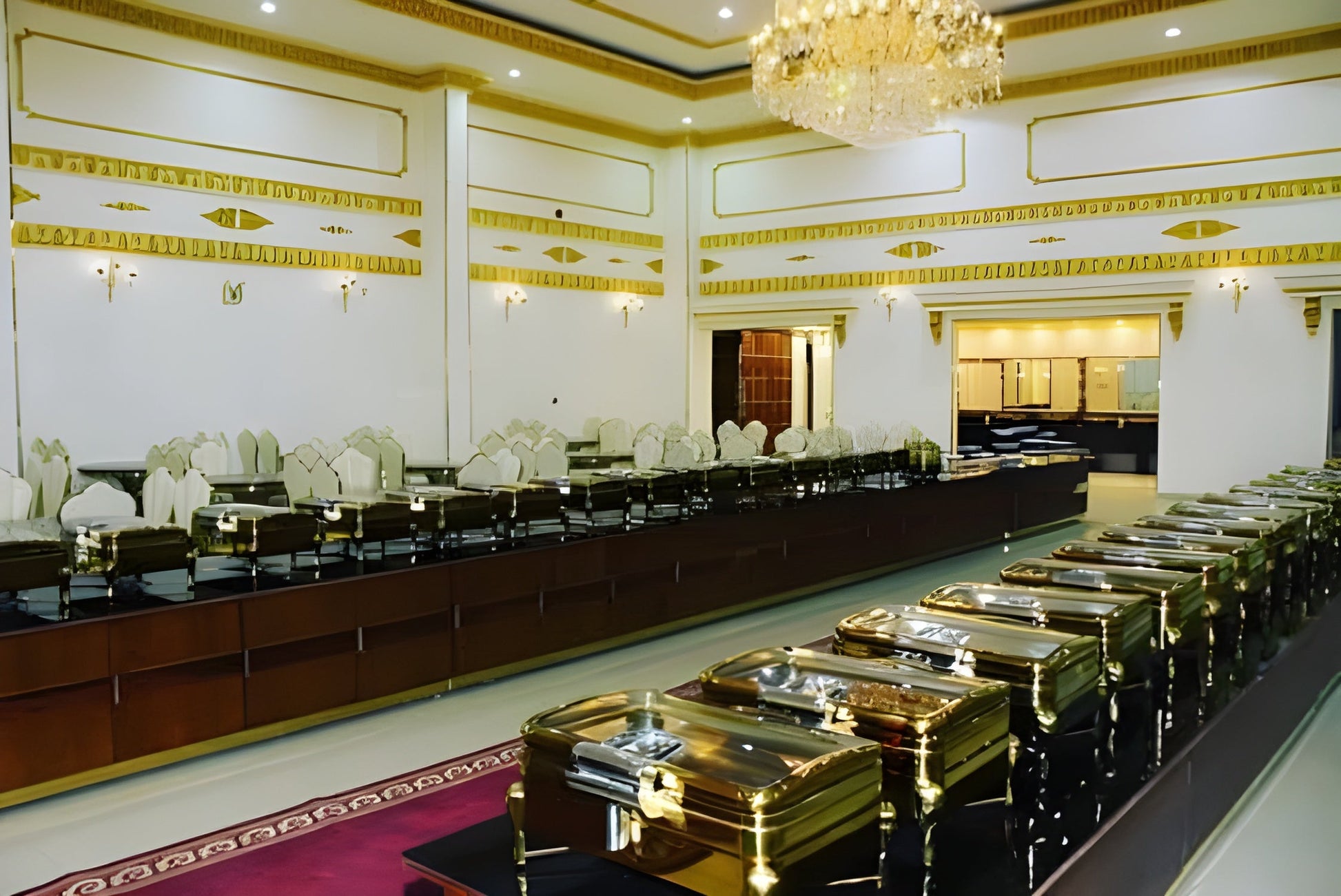 - قاعة الرجال الفاخرة: رحابة وفخامة تليق بضيوفكم الكرام، حيث تتسع لأكثر من 500 شخص في تصميم أنيق، مع صالة طعام مستقلة ومجهزة بالكامل لتقديم واجب الضيافة على أكمل وجه
