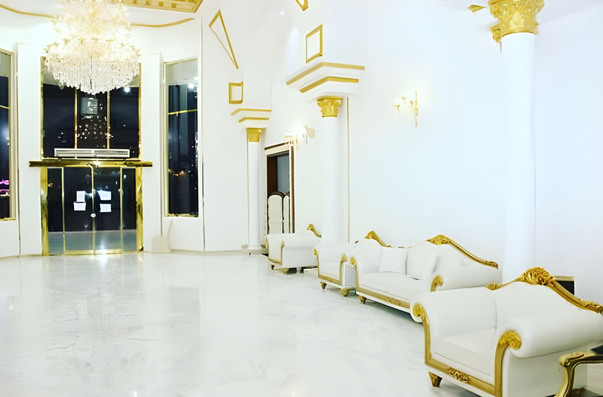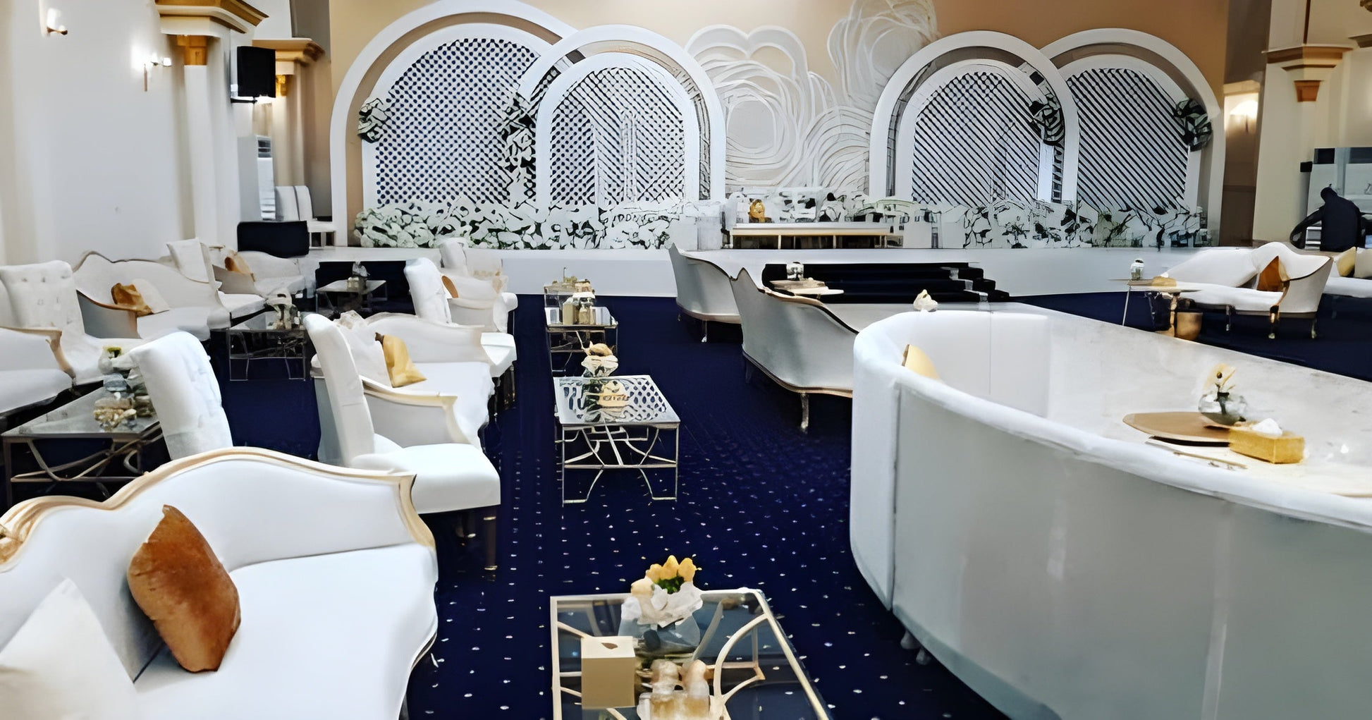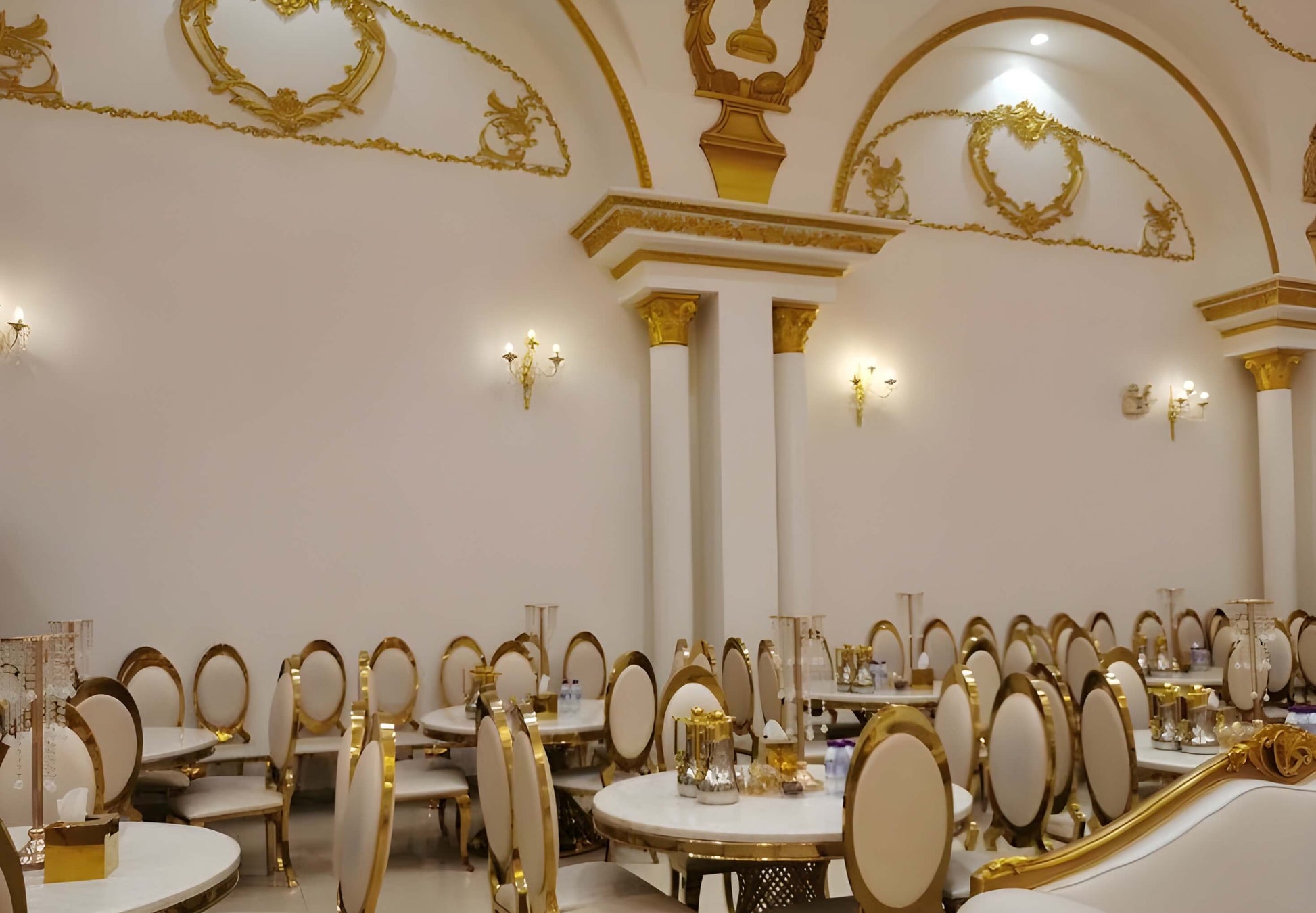 - قاعة النساء الملكية: عالم من الأناقة والجمال يستوعب بسلاسة حتى 500 ضيفة. تتميز القاعة بكوشة ملكية تخطف الأنظار، جناح خاص للعروس مجهز بأعلى مستويات الرفاهية والخصوصية، ومدخل مستقل