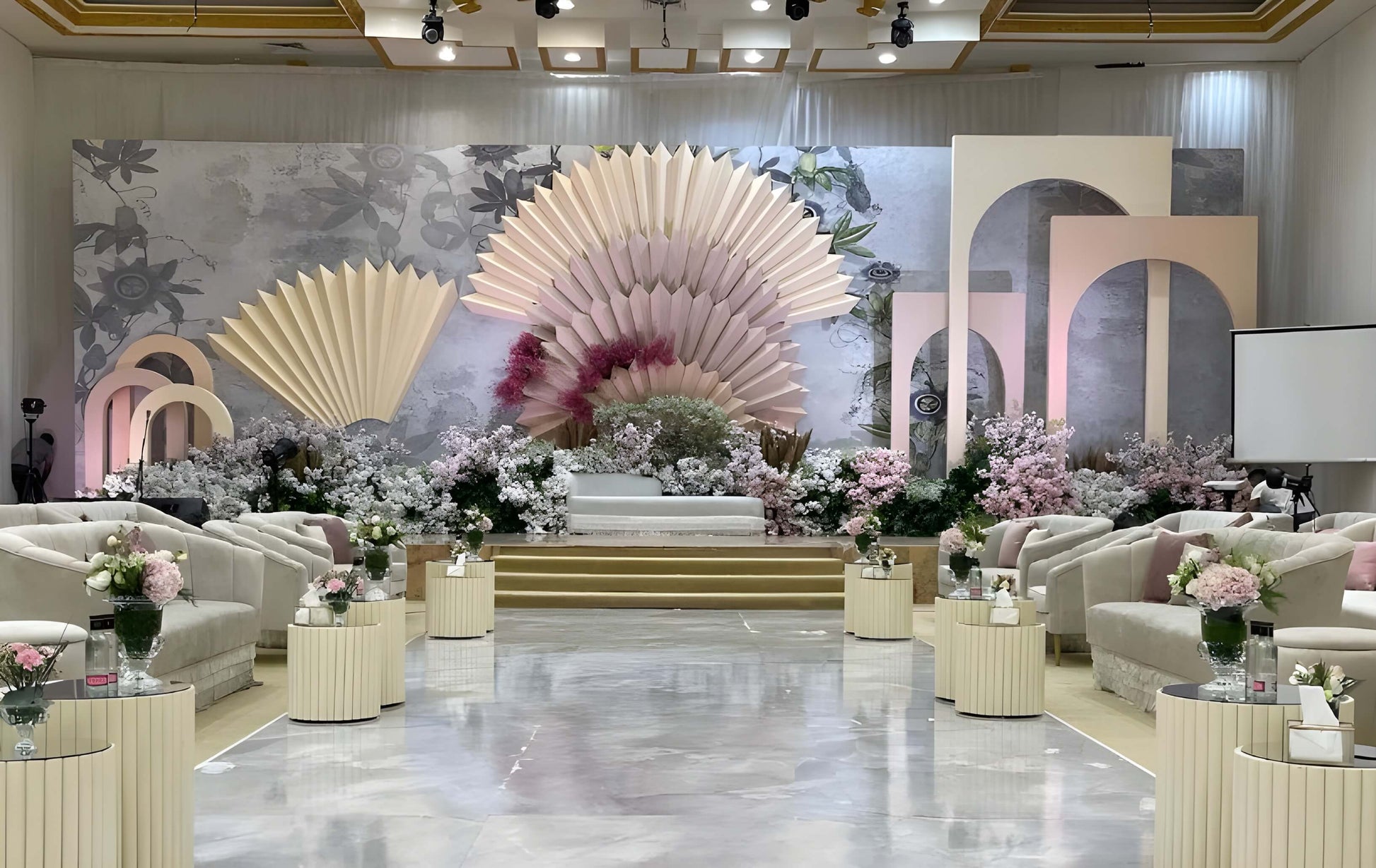 - كوشة الأحلام: تصميم كوشة فخمة متكاملة مع ديكور وزهور طبيعية